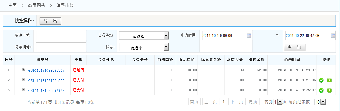 通過審核:點擊通過審核,此消費(fèi)單才可繼續(xù)進(jìn)行
