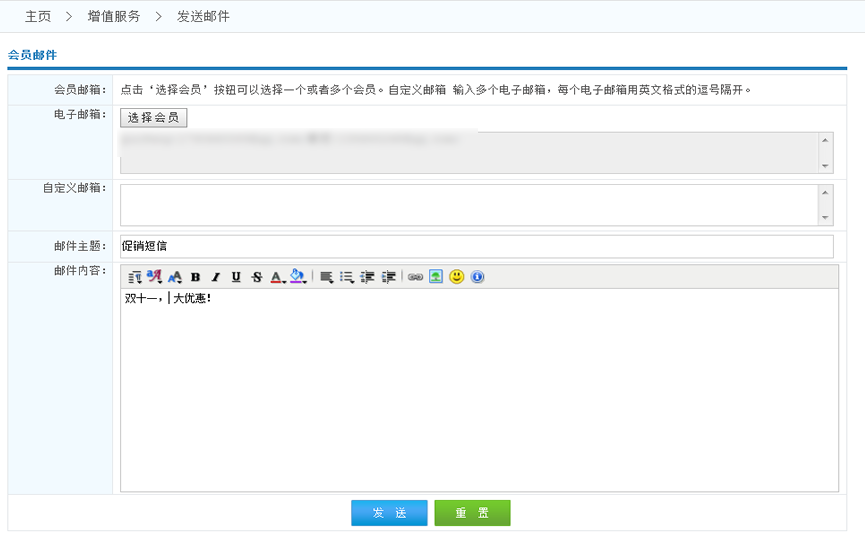 1.電子郵箱:點(diǎn)擊選擇會員 滿足條件的會員的郵箱會自動添加到郵箱列表中