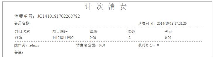 如果有勾選打印小票,則在點擊結(jié)算消費成功后,將會打印出此次計次消費的詳細信息;